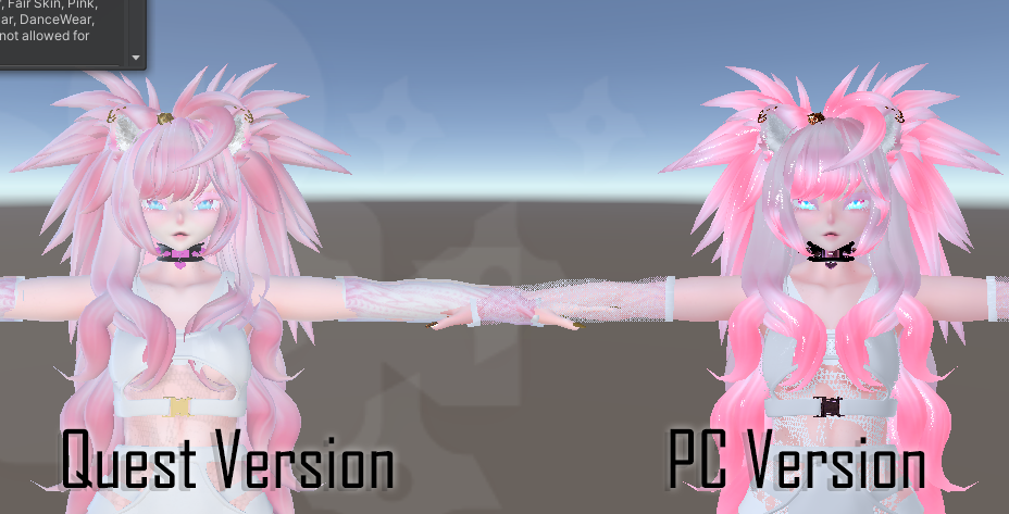 ↳ Comes with Quest, However, Quest is extremely limited and SFW ONLY! Not all toggles work on it etc: ANY HUE HUES, Special toggles, Hair stuff, extra stuff like PC has (from toys to extra clothing)! Quest is mainly meant for Optimization and Standard Quality! Please note this before purchasing. My model is mainly aimed for PC users!!